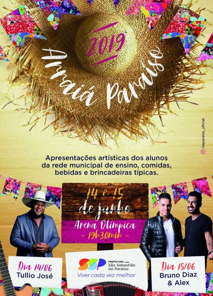 A Secretaria Municipal de Educação da Prefeitura de São Sebastião do Paraíso realiza nesta sexta-feira (14) e no sábado (15), o tradicional “Arraía” — festa junina envolvendo escolas e centros de educação infantil da rede e, este ano, com a participação de entidades assistenciais convidadas. O evento acontece a partir das 19h30 no estacionamento da Arena Olímpica João Mambrini (Vila Dalva) e terá barracas com comidas e bebidas típicas, bingo, brincadeiras, apresentações artísticas dos alunos e shows musicais. A entrada é gratuita.